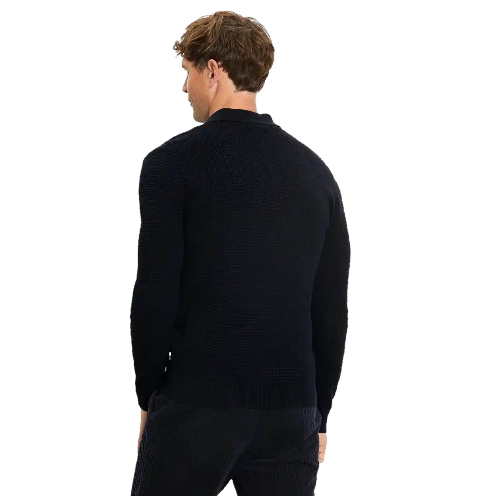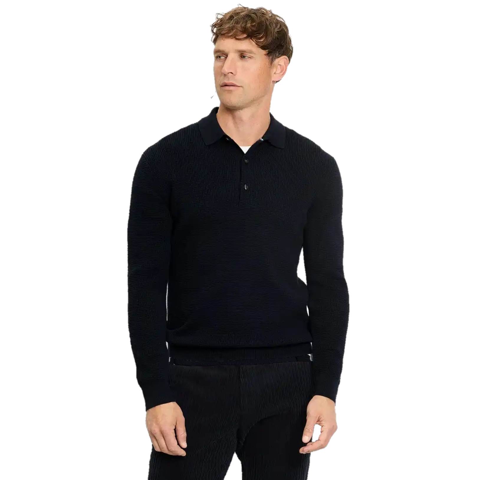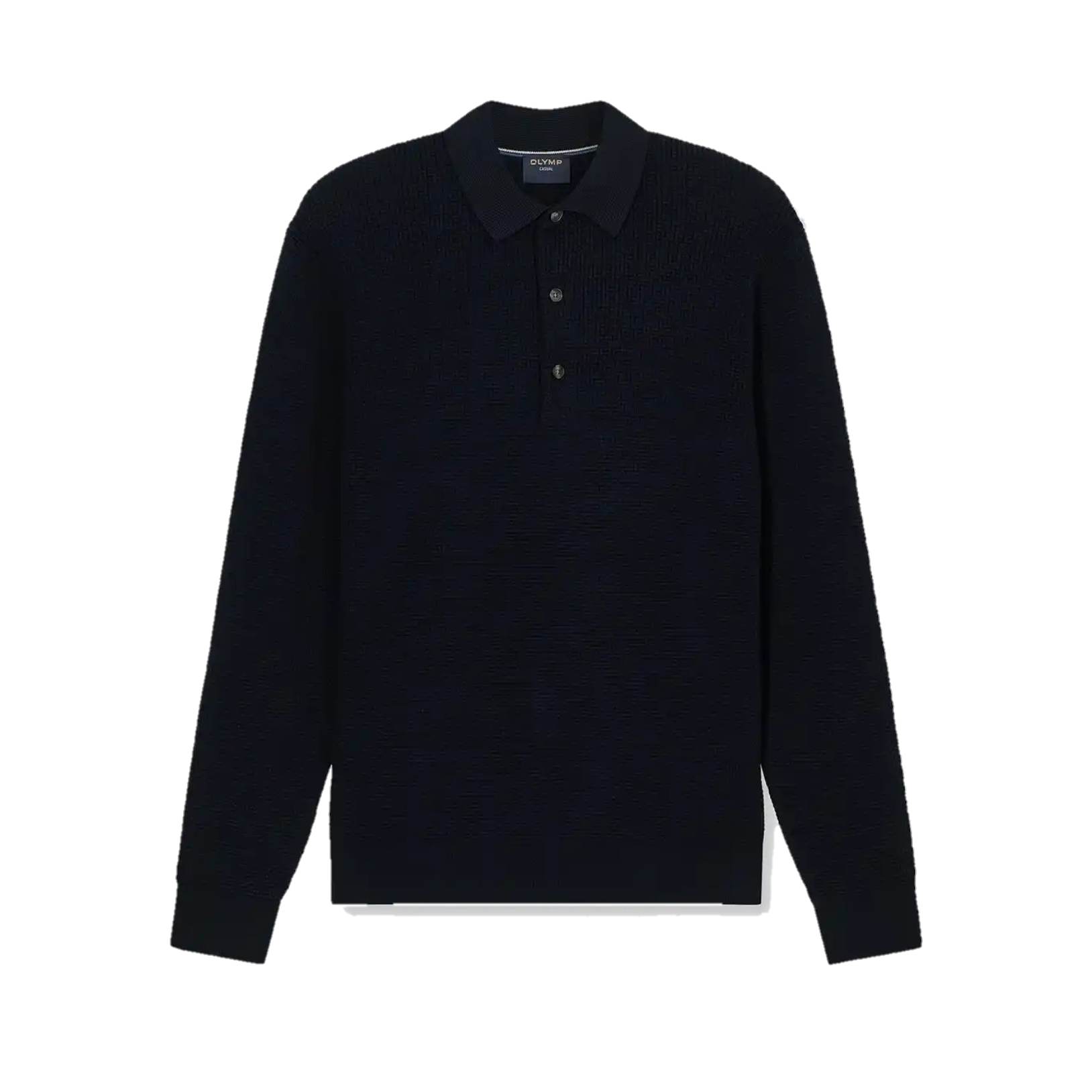 Мужское поло с длинным рукавом от немецкого бренда OLYMP выполнено в глубоком синем цвете из 89% хлопка.
