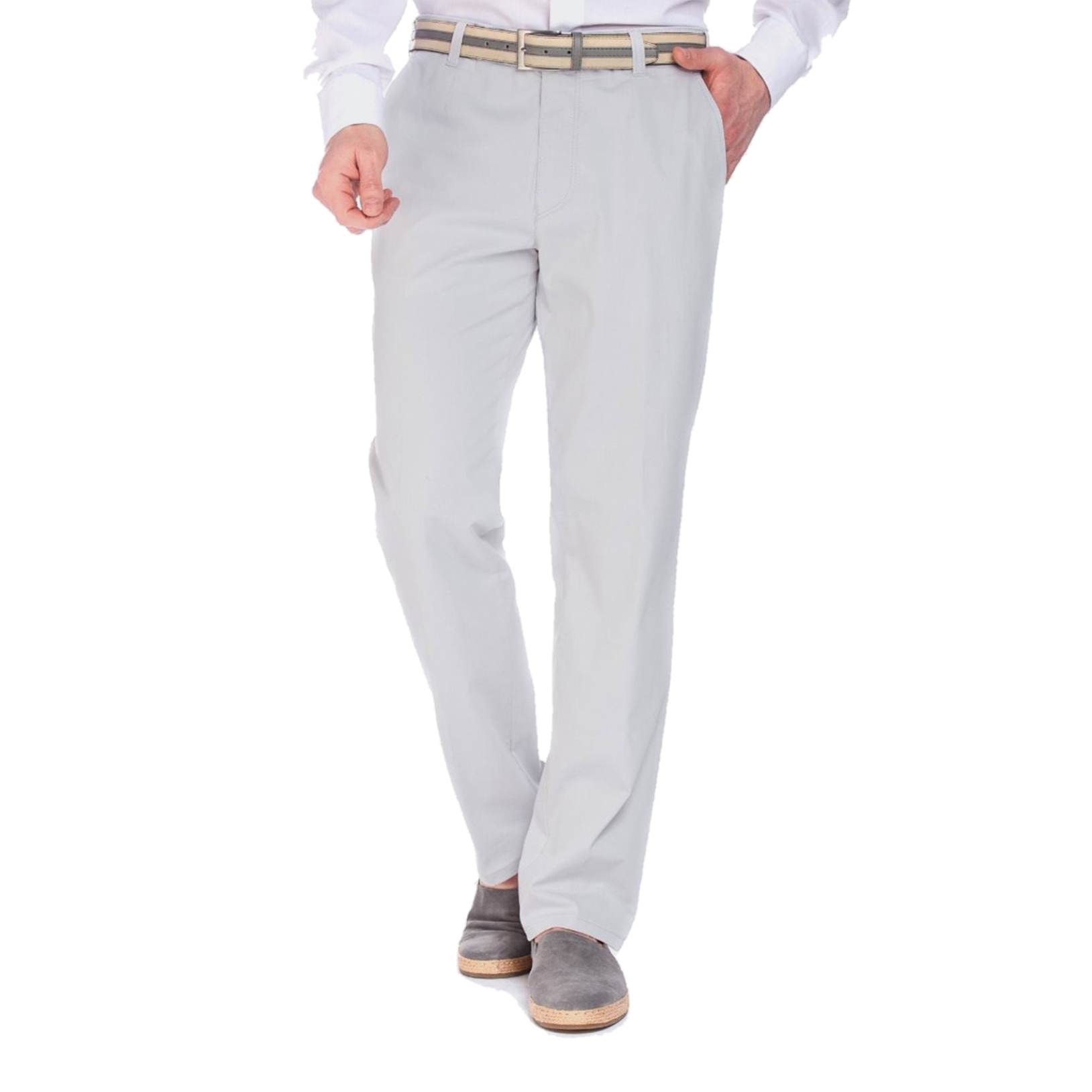 Модель Monza из легкого габардина имеется в приглушенных оттенках, таких как черный, светло-синий, темно-синий и коричневый, а также в светлых летних бежевом и песочном цветах. Ширина брючины внизу 22 см.
