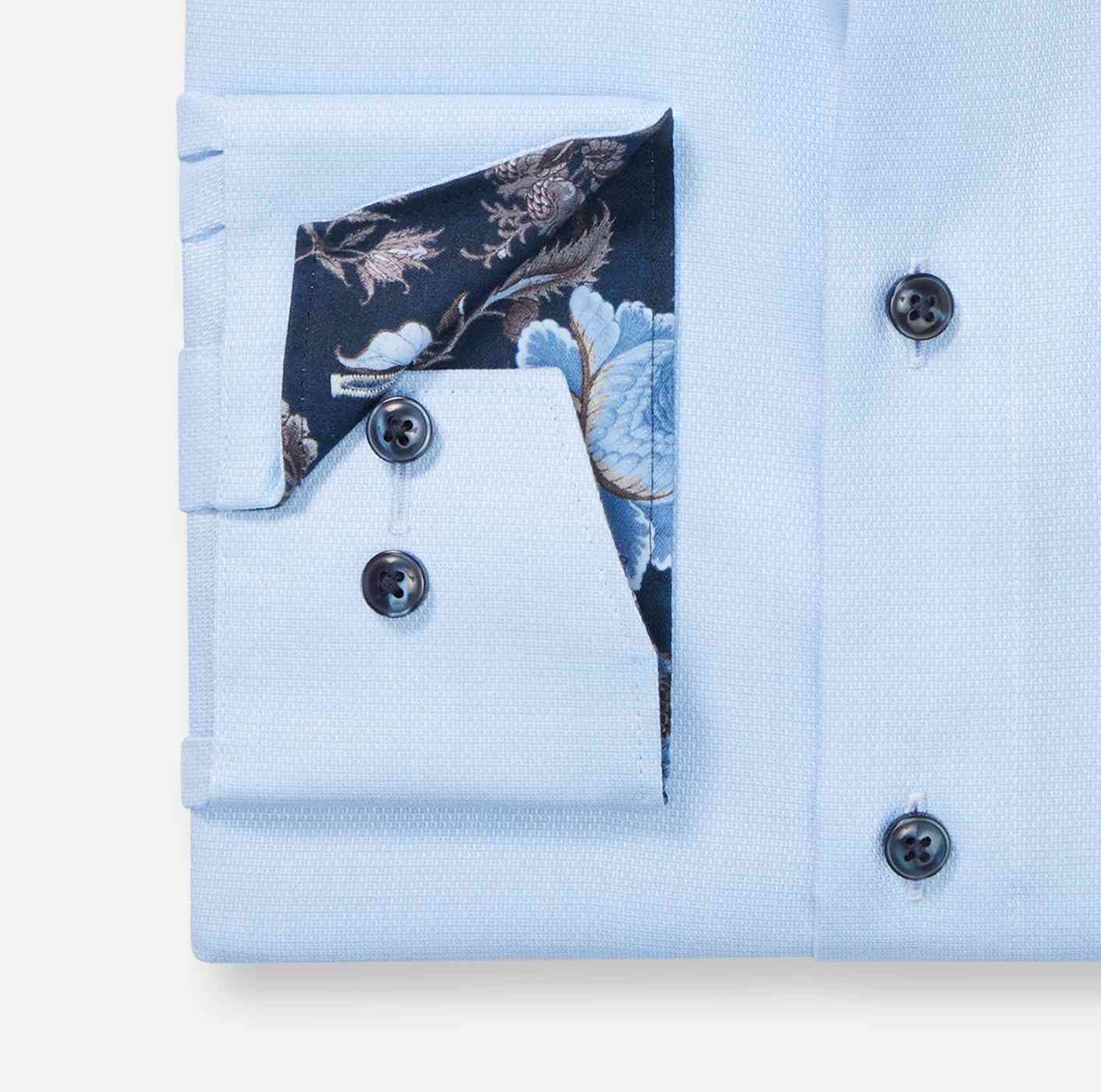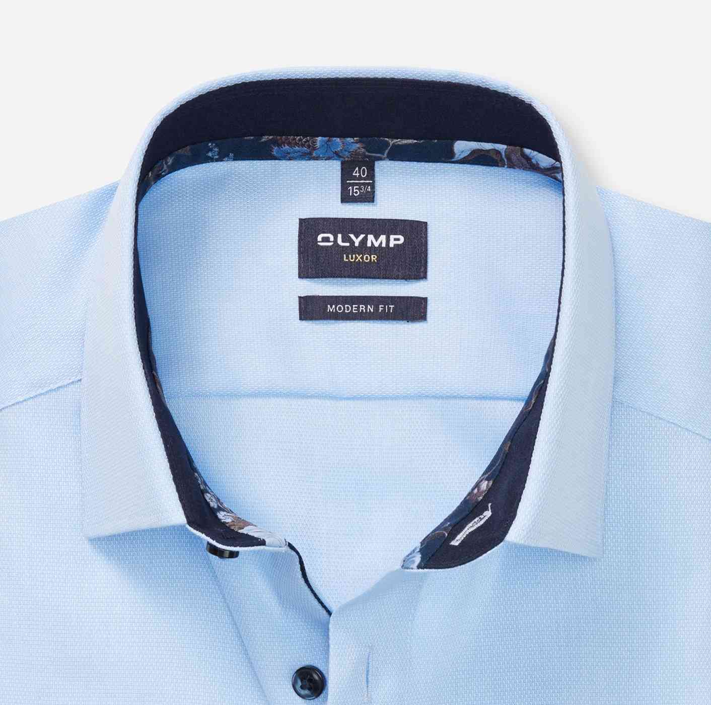 Мужская рубашка OLYMP коллекции Modern fit полуприлегающего силуэта (modern fit). Модель голубого цвета, с графическим минималистичным принтом и однотонной вставкой на манжетах. Деловая рубашка с длинным рукавом (69 см) рекомендуется для мужчин на рост 186-196 см. Модель с элегантным классическим воротником . Рубашка слегка зауженного кроя подчеркивает формы тела и гарантирует достаточную свободу движения, прекрасно подходит для офиса и досуга.