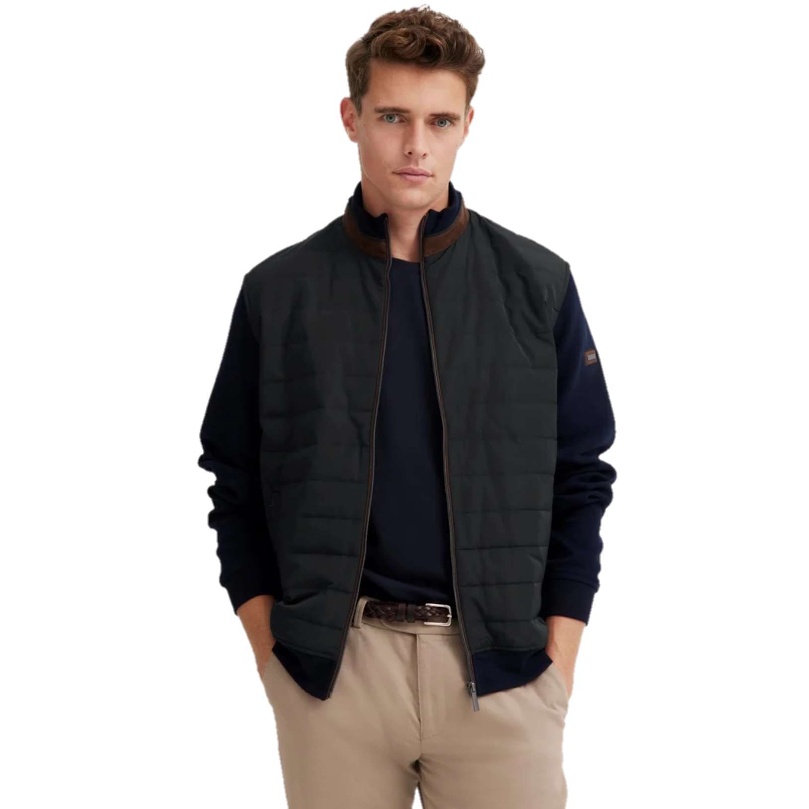 Мужской кардиган Bugatti темно-синего цвета – это стильное сочетание комфорта и практичности. Модель выполнена из хлопка с добавлением полиэстера, имеет стеганую лицевую часть и трикотажные рукава. Застежка – молния. Состав: хлопок 80%, полиэстер 20%.